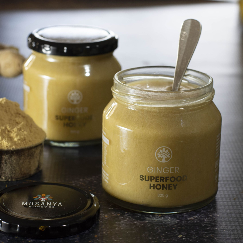 Our ‘superfood honey’ range combines the warm flavour of dried ginger, an important ayurvedic herb, with sustainably sourced, raw honey. Small-scale beekeepers harvest the honey in a forest rehabilitation and social development project in the Miombo Woodlands of sub-tropical Africa. Spread it on toast, drizzle it on cereal, substitute it for sugar in beverages or baking, or tackle the jar with a spoon.